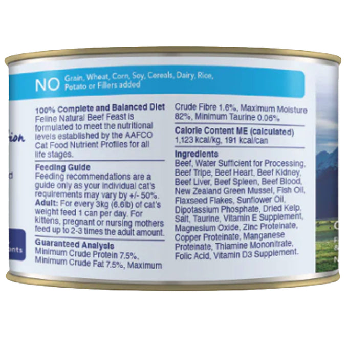 Made from all-natural, free-range, grass-fed beef that's sourced from only the finest sources in New Zealand. It doesn't include artificial ingredients, additives or preservatives. It's an ideal meal for cat with food allergies and doesn't use any wheat, rice, soy or gluten. It's nutritionally fulfilling diet for all breeds of cats and can be fed at any stage of life. Feline Natural's Beef Canned Cat Food comes in a convenient, ready-to-use can.