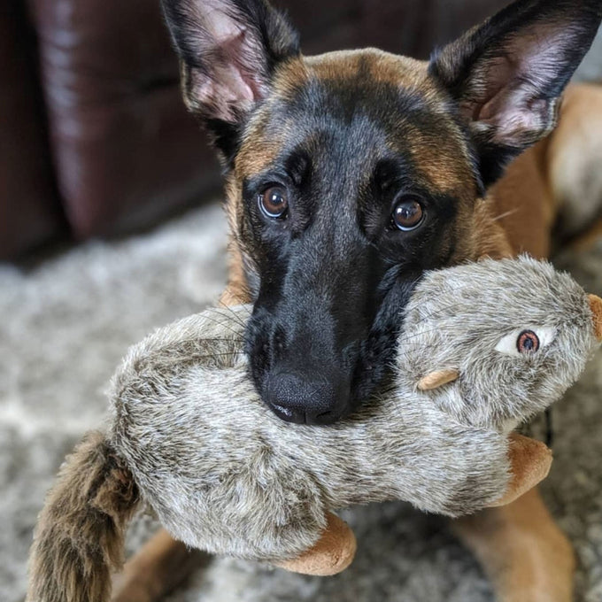 Nuts Squirrel may hoard his acorns, but he's always ready to share the fun. His fluffy tail is tempting for chasing, but his sturdy body is great for tugging.