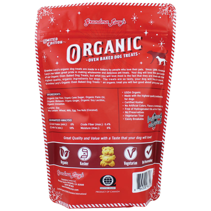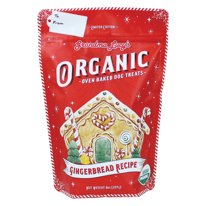 Grandma Lucy's Organic Gingerbread Dog Treats is an oven-baked recipe that is packed with 100% USDA organic, human-quality ingredients so that your dog can happily enjoy optimal nutritional benefits. Grandma Lucy's Organic Oven Baked Dog Treats are an organic treat you will feel good about giving your pet.