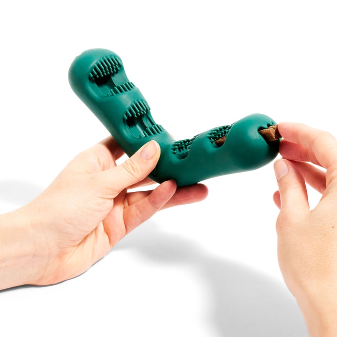 Simply insert a Woof Bite N’ Brush Refill, and your dog will brush their own teeth while they chew and play. Made for all breeds and chewing styles, it’s a smart, natural solution for daily dog dental care and long-lasting fun.