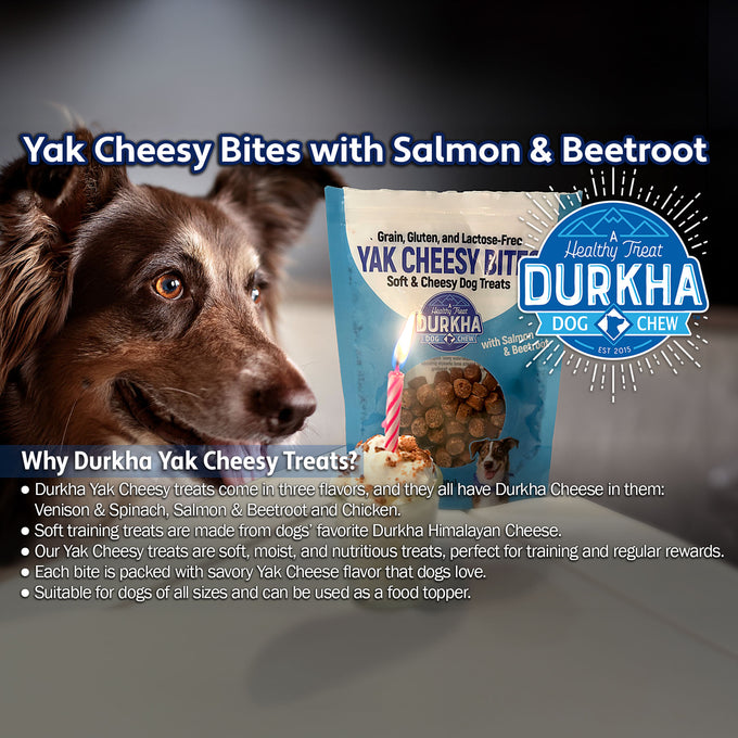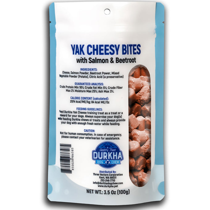 Durkha Pet Products Yak Cheesy Bites Dog Salmon & Beetroot 3.5 oz
