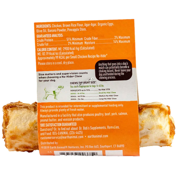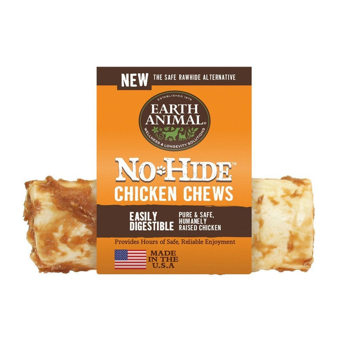 Dogs love to chew! It’s their natural behavior. They chew when they’re teething, for fun, when they’re bored or curious, or out of stress and anxiety. Chewing also helps keep their jaws strong and teeth clean. Earth Animal No-Hide Chews (Chicken, Beef or Salmon) are a safe alternative to raw hide chews.
