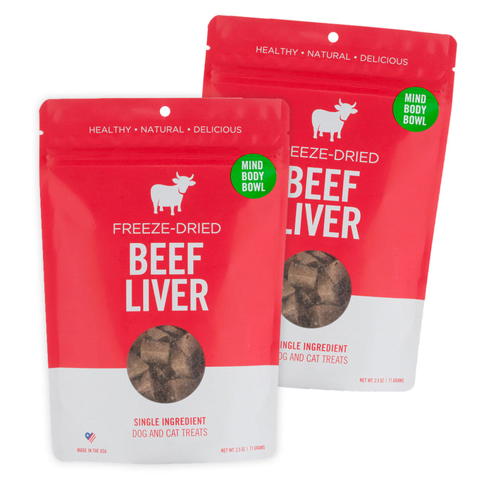 This is a 2-pack of MIND BODY BOWL Beef Liver Freeze-Dried Treats.