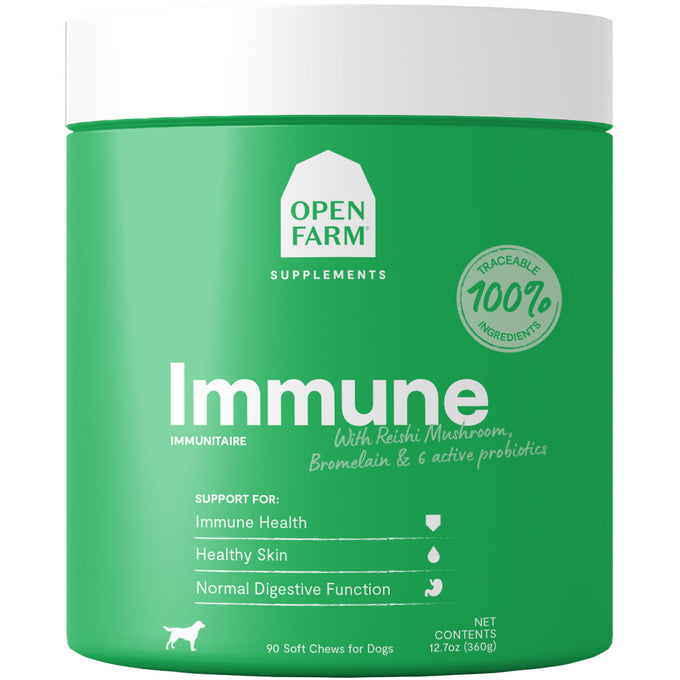 Open Farm's Immunity Apple Cider Vinegar Chews are an easy treat-like supplement made to provide daily support for healthy immune, gut, and skin function for your dog.