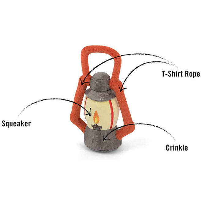 Celebrate the fun of camping with the Pack Leader Lantern toy by P.L.A.Y. It features t-shirt rope handles, a squeaker in the center, and a crinkle base for extra entertainment for your pup.
