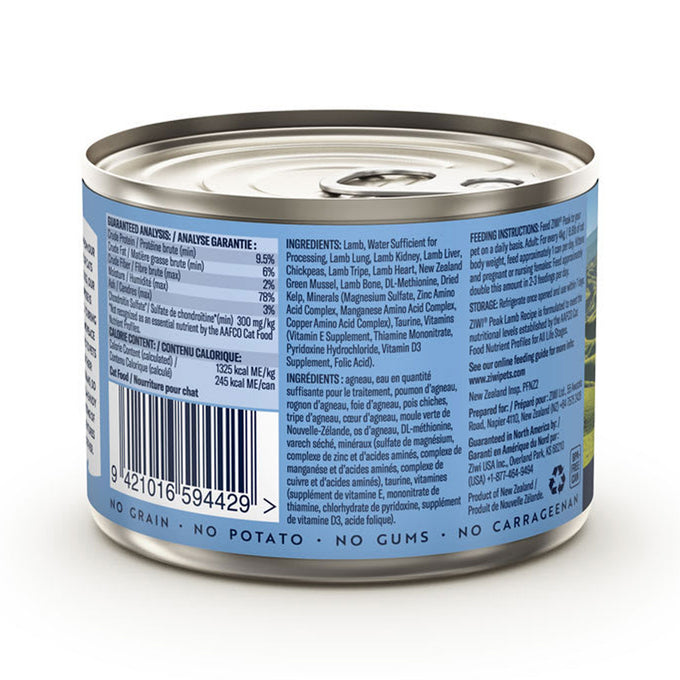 Celebrate the rich culture and beautiful landscape of New Zealand with Ziwipeak's Lamb Cat Can. Every ZIWI Peak wet cat food recipe contains 92% meat, organs, bone and New Zealand Green Mussels, all ethically and sustainably sourced with free-range grass-fed farming in New Zealand.