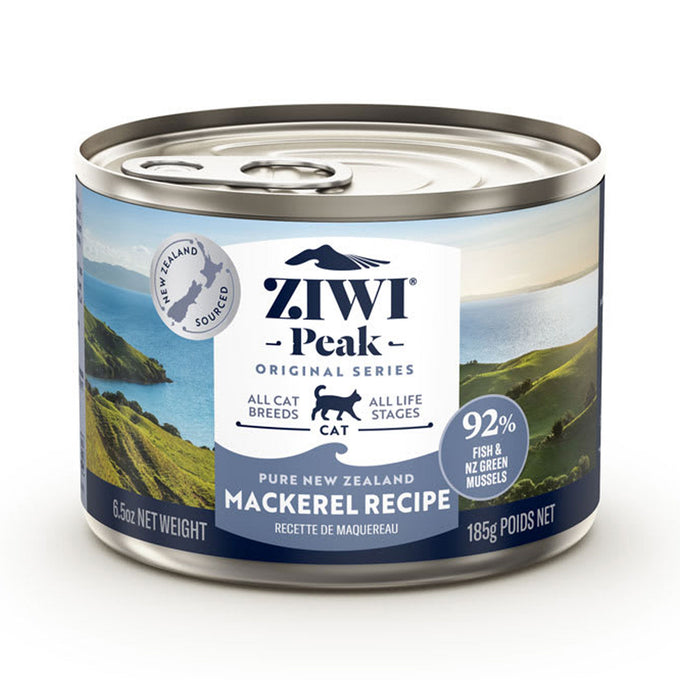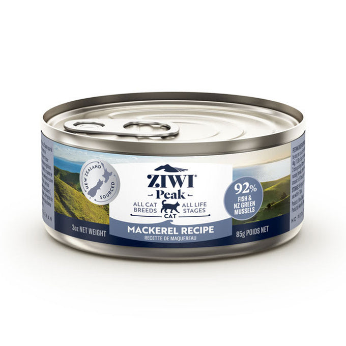 Celebrate the rich culture and beautiful landscape of New Zealand with Ziwipeak's Mackerel Cat Can. Every ZIWI Peak wet cat food recipe contains 92% meat, organs, bone and New Zealand Green Mussels, all ethically and sustainably sourced with whole, wild-caught blue mackerel in New Zealand.