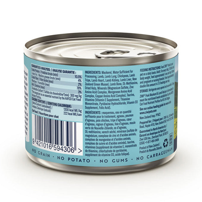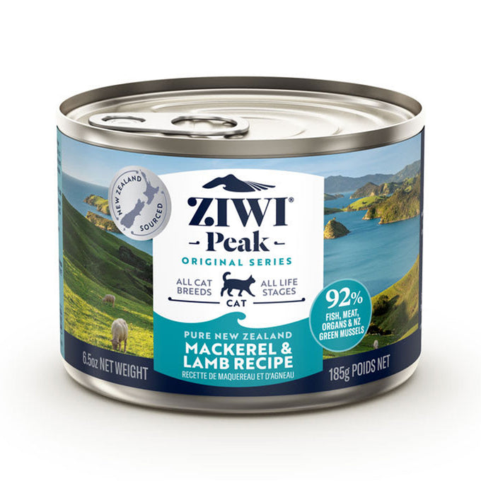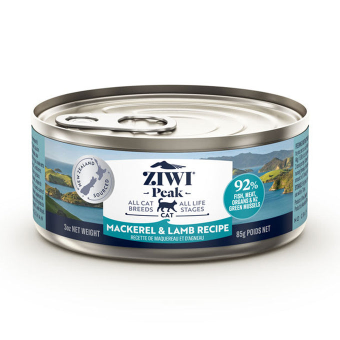Celebrate the rich culture and beautiful landscape of New Zealand with Ziwipeak's Mackerel & Lamb Cat Can. Every ZIWI Peak wet cat food recipe contains 92% meat, organs, bone and New Zealand Green Mussels, all ethically and sustainably sourced with whole, wild-caught blue mackerel and free-range grass-fed farming in New Zealand.