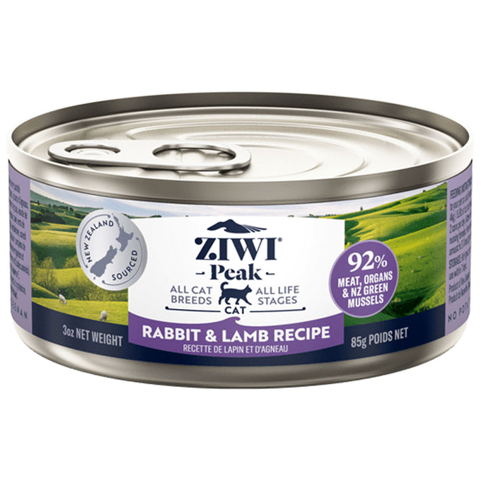Celebrate the rich culture and beautiful landscape of New Zealand with Ziwipeak's Rabbit & Lamb Cat Can. Every ZIWI Peak wet cat food recipe contains 92% meat, organs, bone and New Zealand Green Mussels, all ethically and sustainably sourced with free-range grass-fed farming in New Zealand.